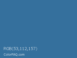 RGB 53,112,157 Color is a normal blue color and the nearest color is Astral #327da0. Hex code #35709d and RGB value is rgb(53,112,157). In RGB color space, this color is composed of 21% red, 44% green, 62% blue, In CMYK color space, this color is composed of 66% cyan, 29% magenta, 0% yellow , 38% black , In HSL color space, this color has a hue angle of 206° , 50% saturation and 41% lightness.