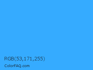 RGB 53,171,255 Color Information