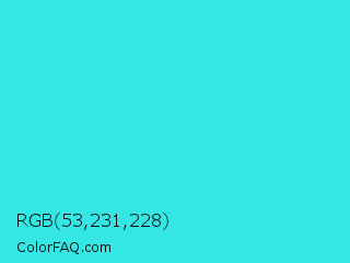 RGB 53,231,228 Color Information
