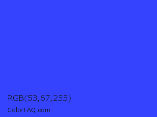 RGB 53,67,255 Color Information