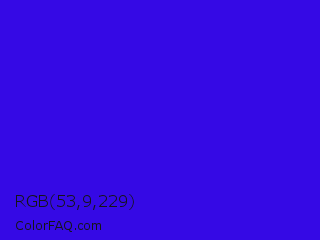 RGB 53,9,229 Color Information