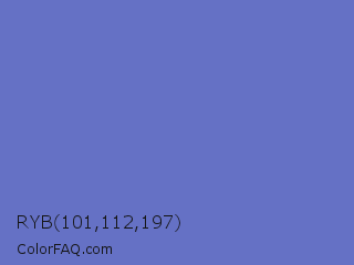 RYB 101,112,197 Color is a normal blue color and the nearest color is Toolbox #746cc0. Hex code #6571c5 and RGB value is rgb(101,113,197). In RGB color space, this color is composed of 40% red, 44% green, 77% blue, In CMYK color space, this color is composed of 49% cyan, 43% magenta, 0% yellow , 23% black , In HSL color space, this color has a hue angle of 233° , 45% saturation and 58% lightness.