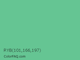 RYB 101,166,197 Color is a normal green color and the nearest color is Silver Tree #66b58f. Hex code #65c593 and RGB value is rgb(101,197,147). In RGB color space, this color is composed of 40% red, 77% green, 58% blue, In CMYK color space, this color is composed of 49% cyan, 0% magenta, 25% yellow , 23% black , In HSL color space, this color has a hue angle of 149° , 45% saturation and 58% lightness.