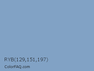 RYB 129,151,197 Color is a light blue color and the nearest color is Dark Pastel Blue #779ecb. Hex code #81a2c5 and RGB value is rgb(129,162,197). In RGB color space, this color is composed of 51% red, 64% green, 77% blue, In CMYK color space, this color is composed of 35% cyan, 18% magenta, 0% yellow , 23% black , In HSL color space, this color has a hue angle of 211° , 37% saturation and 64% lightness.