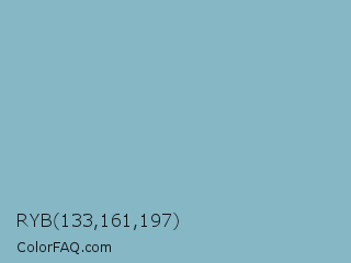 RYB 133,161,197 Color is a light cyan color and the nearest color is Glacier #80b3c4. Hex code #85b7c5 and RGB value is rgb(133,183,197). In RGB color space, this color is composed of 52% red, 72% green, 77% blue, In CMYK color space, this color is composed of 32% cyan, 7% magenta, 0% yellow , 23% black , In HSL color space, this color has a hue angle of 193° , 36% saturation and 65% lightness.