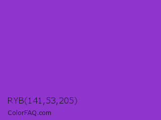 RYB 141,53,205 Color is a normal purple color and the nearest color is Dark Orchid #9932cc. Hex code #8d35cd and RGB value is rgb(141,53,205). In RGB color space, this color is composed of 55% red, 21% green, 80% blue, In CMYK color space, this color is composed of 31% cyan, 74% magenta, 0% yellow , 20% black , In HSL color space, this color has a hue angle of 275° , 60% saturation and 51% lightness.
