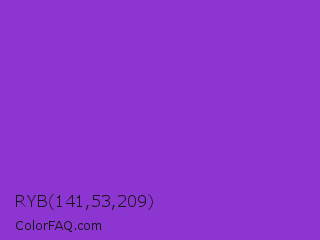 RYB 141,53,209 Color is a normal purple color and the nearest color is Dark Orchid #9932cc. Hex code #8d35d1 and RGB value is rgb(141,53,209). In RGB color space, this color is composed of 55% red, 21% green, 82% blue, In CMYK color space, this color is composed of 33% cyan, 75% magenta, 0% yellow , 18% black , In HSL color space, this color has a hue angle of 274° , 63% saturation and 51% lightness.