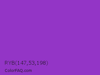 RYB 147,53,198 Color is a normal purple color and the nearest color is Dark Orchid #9932cc. Hex code #9335c6 and RGB value is rgb(147,53,198). In RGB color space, this color is composed of 58% red, 21% green, 78% blue, In CMYK color space, this color is composed of 26% cyan, 73% magenta, 0% yellow , 22% black , In HSL color space, this color has a hue angle of 279° , 58% saturation and 49% lightness.