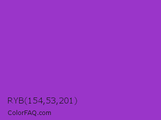 RYB 154,53,201 Color is a normal purple color and the nearest color is Dark Orchid #9932cc. Hex code #9a35c9 and RGB value is rgb(154,53,201). In RGB color space, this color is composed of 60% red, 21% green, 79% blue, In CMYK color space, this color is composed of 23% cyan, 74% magenta, 0% yellow , 21% black , In HSL color space, this color has a hue angle of 281° , 58% saturation and 50% lightness.