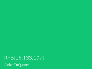 RYB 16,133,197 Color is a normal green color and the nearest color is Mountain Meadow Crayola #1ab385. Hex code #10c573 and RGB value is rgb(16,197,115). In RGB color space, this color is composed of 6% red, 77% green, 45% blue, In CMYK color space, this color is composed of 92% cyan, 0% magenta, 42% yellow , 23% black , In HSL color space, this color has a hue angle of 153° , 85% saturation and 42% lightness.