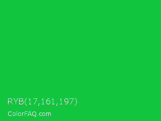RYB 17,161,197 Color is a normal green color and the nearest color is Dark Pastel Green #03c03c. Hex code #11c53e and RGB value is rgb(17,197,62). In RGB color space, this color is composed of 7% red, 77% green, 24% blue, In CMYK color space, this color is composed of 91% cyan, 0% magenta, 69% yellow , 23% black , In HSL color space, this color has a hue angle of 135° , 84% saturation and 42% lightness.