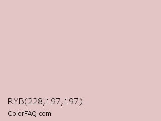 RYB 228,197,197 Color is a very light red color and the nearest color is Pink Flare #e1c0c8. Hex code #e4c5c5 and RGB value is rgb(228,197,197). In RGB color space, this color is composed of 89% red, 77% green, 77% blue, In CMYK color space, this color is composed of 0% cyan, 14% magenta, 14% yellow , 11% black , In HSL color space, this color has a hue angle of 0° , 36% saturation and 83% lightness.