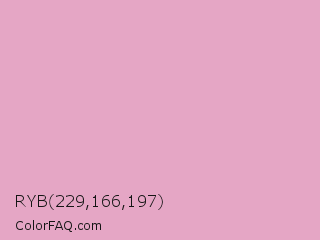 RYB 229,166,197 Color is a light rose color and the nearest color is Kobi #e79fc4. Hex code #e5a6c5 and RGB value is rgb(229,166,197). In RGB color space, this color is composed of 90% red, 65% green, 77% blue, In CMYK color space, this color is composed of 0% cyan, 28% magenta, 14% yellow , 10% black , In HSL color space, this color has a hue angle of 330° , 55% saturation and 77% lightness.