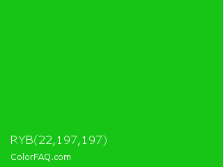 RYB 22,197,197 Color is a normal green color and the nearest color is Vivid Malachite #00cc33. Hex code #16c516 and RGB value is rgb(22,197,22). In RGB color space, this color is composed of 9% red, 77% green, 9% blue, In CMYK color space, this color is composed of 89% cyan, 0% magenta, 89% yellow , 23% black , In HSL color space, this color has a hue angle of 120° , 80% saturation and 43% lightness.