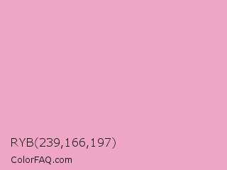 RYB 239,166,197 Color is a light rose color and the nearest color is Illusion #f6a4c9. Hex code #efa6c5 and RGB value is rgb(239,166,197). In RGB color space, this color is composed of 94% red, 65% green, 77% blue, In CMYK color space, this color is composed of 0% cyan, 31% magenta, 18% yellow , 6% black , In HSL color space, this color has a hue angle of 335° , 70% saturation and 79% lightness.