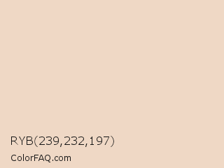 RYB 239,232,197 Color is a very light orange color and the nearest color is Almond #eed9c4. Hex code #efd8c5 and RGB value is rgb(239,216,197). In RGB color space, this color is composed of 94% red, 85% green, 77% blue, In CMYK color space, this color is composed of 0% cyan, 10% magenta, 18% yellow , 6% black , In HSL color space, this color has a hue angle of 27° , 57% saturation and 85% lightness.