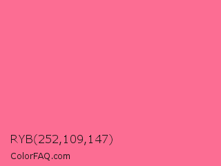 RYB 252,109,147 Color is a light rose color and the nearest color is Light Crimson #f56991. Hex code #fc6d93 and RGB value is rgb(252,109,147). In RGB color space, this color is composed of 99% red, 43% green, 58% blue, In CMYK color space, this color is composed of 0% cyan, 57% magenta, 42% yellow , 1% black , In HSL color space, this color has a hue angle of 344° , 96% saturation and 71% lightness.