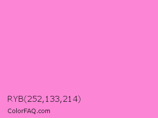 RYB 252,133,214 Color is a light magenta color and the nearest color is Princess Perfume #ff85cf. Hex code #fc85d6 and RGB value is rgb(252,133,214). In RGB color space, this color is composed of 99% red, 52% green, 84% blue, In CMYK color space, this color is composed of 0% cyan, 47% magenta, 15% yellow , 1% black , In HSL color space, this color has a hue angle of 319° , 95% saturation and 75% lightness.