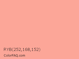 RYB 252,168,152 Color is a light red color and the nearest color is Mona Lisa #ffa194. Hex code #fca698 and RGB value is rgb(252,166,152). In RGB color space, this color is composed of 99% red, 65% green, 60% blue, In CMYK color space, this color is composed of 0% cyan, 34% magenta, 40% yellow , 1% black , In HSL color space, this color has a hue angle of 8° , 94% saturation and 79% lightness.