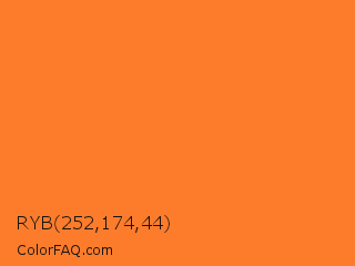 RYB 252,174,44 Color is a normal orange color and the nearest color is Crusta #fd7b33. Hex code #fc7c2c and RGB value is rgb(252,124,44). In RGB color space, this color is composed of 99% red, 49% green, 17% blue, In CMYK color space, this color is composed of 0% cyan, 51% magenta, 83% yellow , 1% black , In HSL color space, this color has a hue angle of 23° , 97% saturation and 58% lightness.