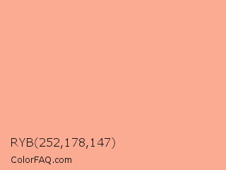 RYB 252,178,147 Color is a light red color and the nearest color is Mona Lisa #ffa194. Hex code #fcab93 and RGB value is rgb(252,171,147). In RGB color space, this color is composed of 99% red, 67% green, 58% blue, In CMYK color space, this color is composed of 0% cyan, 32% magenta, 42% yellow , 1% black , In HSL color space, this color has a hue angle of 14° , 95% saturation and 78% lightness.