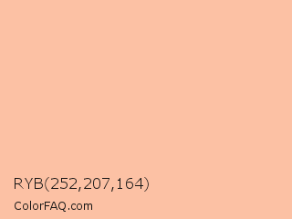 RYB 252,207,164 Color is a very light orange color and the nearest color is Wax Flower #ffc0a8. Hex code #fcc1a4 and RGB value is rgb(252,193,164). In RGB color space, this color is composed of 99% red, 76% green, 64% blue, In CMYK color space, this color is composed of 0% cyan, 23% magenta, 35% yellow , 1% black , In HSL color space, this color has a hue angle of 20° , 94% saturation and 82% lightness.