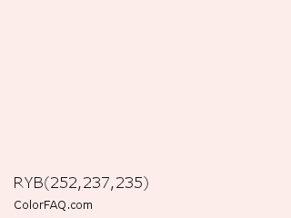 RYB 252,237,235 Color is a almost white red color and the nearest color is Fair Pink #ffefec. Hex code #fcedeb and RGB value is rgb(252,237,235). In RGB color space, this color is composed of 99% red, 93% green, 92% blue, In CMYK color space, this color is composed of 0% cyan, 6% magenta, 7% yellow , 1% black , In HSL color space, this color has a hue angle of 7° , 74% saturation and 95% lightness.
