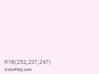 RYB 252,237,247 Color is a almost white magenta color and the nearest color is Lavender Blush #fff0f5. Hex code #fcedf7 and RGB value is rgb(252,237,247). In RGB color space, this color is composed of 99% red, 93% green, 97% blue, In CMYK color space, this color is composed of 0% cyan, 6% magenta, 2% yellow , 1% black , In HSL color space, this color has a hue angle of 320° , 71% saturation and 96% lightness.