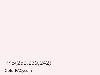 RYB 252,239,242 Color is a almost white red color and the nearest color is Lavender Blush #fff0f5. Hex code #fceff2 and RGB value is rgb(252,239,242). In RGB color space, this color is composed of 99% red, 94% green, 95% blue, In CMYK color space, this color is composed of 0% cyan, 5% magenta, 4% yellow , 1% black , In HSL color space, this color has a hue angle of 346° , 68% saturation and 96% lightness.