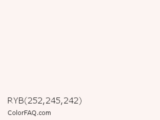 RYB 252,245,242 Color is a almost white red color and the nearest color is Provincial Pink #fef5f1. Hex code #fcf4f2 and RGB value is rgb(252,244,242). In RGB color space, this color is composed of 99% red, 96% green, 95% blue, In CMYK color space, this color is composed of 0% cyan, 3% magenta, 4% yellow , 1% black , In HSL color space, this color has a hue angle of 12° , 63% saturation and 97% lightness.