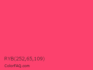 RYB 252,65,109 Color is a light red color and the nearest color is Magic Potion #ff4466. Hex code #fc416d and RGB value is rgb(252,65,109). In RGB color space, this color is composed of 99% red, 25% green, 43% blue, In CMYK color space, this color is composed of 0% cyan, 74% magenta, 57% yellow , 1% black , In HSL color space, this color has a hue angle of 346° , 97% saturation and 62% lightness.