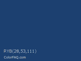 RYB 28,53,111 Color is a dark blue color and the nearest color is Astronaut #283a77. Hex code #1c406f and RGB value is rgb(28,64,111). In RGB color space, this color is composed of 11% red, 25% green, 44% blue, In CMYK color space, this color is composed of 75% cyan, 42% magenta, 0% yellow , 56% black , In HSL color space, this color has a hue angle of 214° , 60% saturation and 27% lightness.