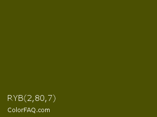 RYB 2,80,7 Color is a very dark yellow color and the nearest color is Verdun Green #495400. Hex code #4b5002 and RGB value is rgb(75,80,2). In RGB color space, this color is composed of 29% red, 31% green, 1% blue, In CMYK color space, this color is composed of 6% cyan, 0% magenta, 98% yellow , 69% black , In HSL color space, this color has a hue angle of 64° , 95% saturation and 16% lightness.