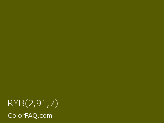 RYB 2,91,7 Color is a very dark yellow color and the nearest color is Saratoga #555b10. Hex code #565b02 and RGB value is rgb(86,91,2). In RGB color space, this color is composed of 34% red, 36% green, 1% blue, In CMYK color space, this color is composed of 5% cyan, 0% magenta, 98% yellow , 64% black , In HSL color space, this color has a hue angle of 63° , 96% saturation and 18% lightness.