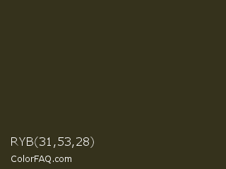 RYB 31,53,28 Color is a very dark yellow color and the nearest color is Birch #373021. Hex code #35321c and RGB value is rgb(53,50,28). In RGB color space, this color is composed of 21% red, 20% green, 11% blue, In CMYK color space, this color is composed of 0% cyan, 6% magenta, 47% yellow , 79% black , In HSL color space, this color has a hue angle of 53° , 31% saturation and 16% lightness.