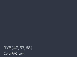 RYB 47,53,68 Color is a dark blue color and the nearest color is Tuna #353542. Hex code #2f3744 and RGB value is rgb(47,55,68). In RGB color space, this color is composed of 18% red, 22% green, 27% blue, In CMYK color space, this color is composed of 31% cyan, 19% magenta, 0% yellow , 73% black , In HSL color space, this color has a hue angle of 217° , 18% saturation and 23% lightness.