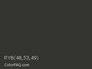 RYB 48,53,49 Color is a very dark lime color and the nearest color is Mine Shaft #323232. Hex code #343530 and RGB value is rgb(52,53,48). In RGB color space, this color is composed of 20% red, 21% green, 19% blue, In CMYK color space, this color is composed of 2% cyan, 0% magenta, 9% yellow , 79% black , In HSL color space, this color has a hue angle of 72° , 5% saturation and 20% lightness.