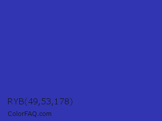 RYB 49,53,178 Color is a normal blue color and the nearest color is Governor Bay #2f3cb3. Hex code #3135b2 and RGB value is rgb(49,53,178). In RGB color space, this color is composed of 19% red, 21% green, 70% blue, In CMYK color space, this color is composed of 72% cyan, 70% magenta, 0% yellow , 30% black , In HSL color space, this color has a hue angle of 238° , 57% saturation and 45% lightness.