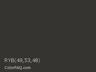 RYB 49,53,48 Color is a very dark yellow color and the nearest color is Mine Shaft #323232. Hex code #353430 and RGB value is rgb(53,52,48). In RGB color space, this color is composed of 21% red, 20% green, 19% blue, In CMYK color space, this color is composed of 0% cyan, 2% magenta, 9% yellow , 79% black , In HSL color space, this color has a hue angle of 48° , 5% saturation and 20% lightness.