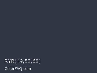 RYB 49,53,68 Color is a dark blue color and the nearest color is Tuna #353542. Hex code #313644 and RGB value is rgb(49,54,68). In RGB color space, this color is composed of 19% red, 21% green, 27% blue, In CMYK color space, this color is composed of 28% cyan, 21% magenta, 0% yellow , 73% black , In HSL color space, this color has a hue angle of 224° , 16% saturation and 23% lightness.