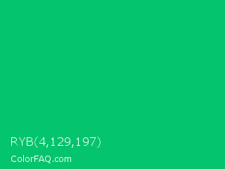 RYB 4,129,197 Color is a normal green color and the nearest color is GO Green #00ab66. Hex code #04c56d and RGB value is rgb(4,197,109). In RGB color space, this color is composed of 2% red, 77% green, 43% blue, In CMYK color space, this color is composed of 98% cyan, 0% magenta, 45% yellow , 23% black , In HSL color space, this color has a hue angle of 153° , 96% saturation and 39% lightness.