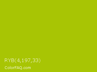 RYB 4,197,33 Color is a normal yellow color and the nearest color is Citrus #a1c50a. Hex code #a8c504 and RGB value is rgb(168,197,4). In RGB color space, this color is composed of 66% red, 77% green, 2% blue, In CMYK color space, this color is composed of 15% cyan, 0% magenta, 98% yellow , 23% black , In HSL color space, this color has a hue angle of 69° , 96% saturation and 39% lightness.