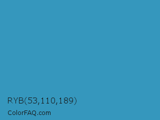 RYB 53,110,189 Color is a normal blue color and the nearest color is Boston Blue #3b91b4. Hex code #3597bd and RGB value is rgb(53,151,189). In RGB color space, this color is composed of 21% red, 59% green, 74% blue, In CMYK color space, this color is composed of 72% cyan, 20% magenta, 0% yellow , 26% black , In HSL color space, this color has a hue angle of 197° , 56% saturation and 47% lightness.