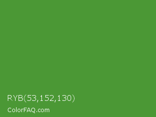 RYB 53,152,130 Color is a normal green color and the nearest color is May Green #4c9141. Hex code #4b9835 and RGB value is rgb(75,152,53). In RGB color space, this color is composed of 29% red, 60% green, 21% blue, In CMYK color space, this color is composed of 51% cyan, 0% magenta, 65% yellow , 40% black , In HSL color space, this color has a hue angle of 107° , 48% saturation and 40% lightness.