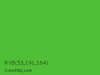RYB 53,191,164 Color is a normal green color and the nearest color is Apple #4fa83d. Hex code #50bf35 and RGB value is rgb(80,191,53). In RGB color space, this color is composed of 31% red, 75% green, 21% blue, In CMYK color space, this color is composed of 58% cyan, 0% magenta, 72% yellow , 25% black , In HSL color space, this color has a hue angle of 108° , 57% saturation and 48% lightness.