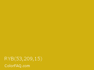 RYB 53,209,15 Color is a normal yellow color and the nearest color is Galliano #dcb20c. Hex code #d1b10f and RGB value is rgb(209,177,15). In RGB color space, this color is composed of 82% red, 69% green, 6% blue, In CMYK color space, this color is composed of 0% cyan, 15% magenta, 93% yellow , 18% black , In HSL color space, this color has a hue angle of 50° , 87% saturation and 44% lightness.