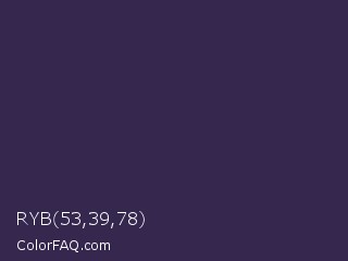 RYB 53,39,78 Color is a dark violet color and the nearest color is Martinique #363050. Hex code #35274e and RGB value is rgb(53,39,78). In RGB color space, this color is composed of 21% red, 15% green, 31% blue, In CMYK color space, this color is composed of 32% cyan, 50% magenta, 0% yellow , 69% black , In HSL color space, this color has a hue angle of 262° , 33% saturation and 23% lightness.