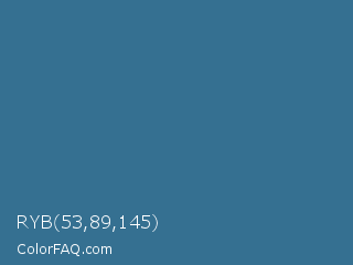 RYB 53,89,145 Color is a normal blue color and the nearest color is Calypso #31728d. Hex code #357091 and RGB value is rgb(53,112,145). In RGB color space, this color is composed of 21% red, 44% green, 57% blue, In CMYK color space, this color is composed of 63% cyan, 23% magenta, 0% yellow , 43% black , In HSL color space, this color has a hue angle of 202° , 46% saturation and 39% lightness.