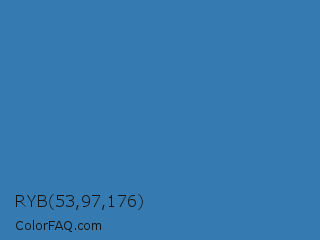 RYB 53,97,176 Color is a normal blue color and the nearest color is Astral #327da0. Hex code #357ab0 and RGB value is rgb(53,122,176). In RGB color space, this color is composed of 21% red, 48% green, 69% blue, In CMYK color space, this color is composed of 70% cyan, 31% magenta, 0% yellow , 31% black , In HSL color space, this color has a hue angle of 206° , 54% saturation and 45% lightness.