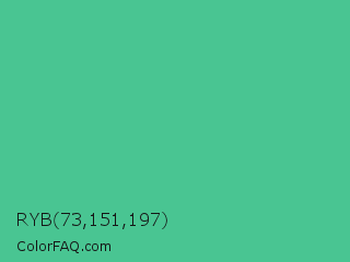 RYB 73,151,197 Color is a normal green color and the nearest color is Ocean Green #48bf91. Hex code #49c592 and RGB value is rgb(73,197,146). In RGB color space, this color is composed of 29% red, 77% green, 57% blue, In CMYK color space, this color is composed of 63% cyan, 0% magenta, 26% yellow , 23% black , In HSL color space, this color has a hue angle of 155° , 52% saturation and 53% lightness.